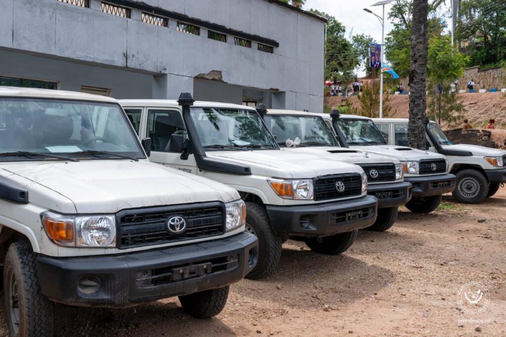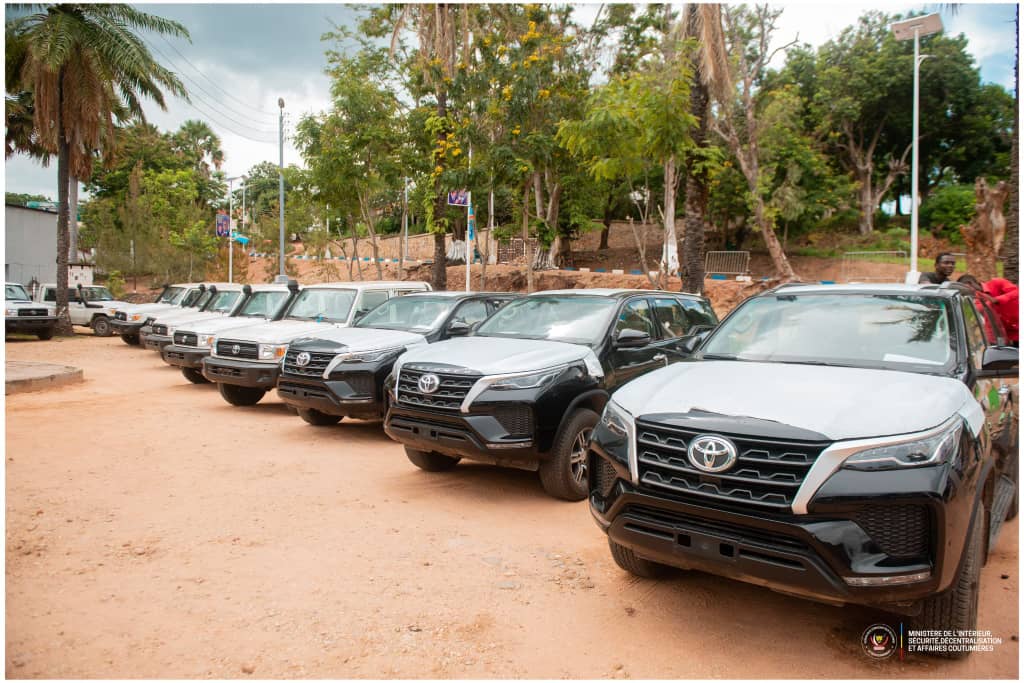 Un total de 62 jeeps de marque Land Cruiser et Toyota Fortuner au Vice-Premier Ministre de l’Intérieur, Sécurité, Décentralisation et Affaires Coutumières, Jacquemain SHABANI, qui, à son tour, les a remis aux bénéficiaires.