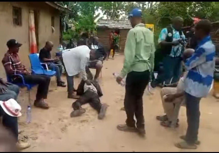 Dans ces images, on le voit entrain de donner l’ordre à son caméraman de fouetter un homme présumé vendeur illégal de terres ancestrales dans un village du territoire de Mbanza-Ngungu.