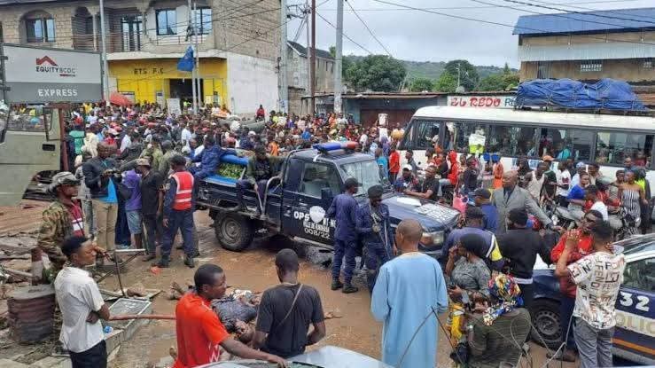 D’après le constat fait par nos confrères de l’ACP, un camion-benne chargé de caillasse a perdu le contrôle avant de foncer sur plusieurs petits véhicules stationnés ou en circulation dans le secteur très fréquenté du marché. Quatre corps sans vie ont été retrouvés sur place, étendus sur la chaussée et Plusieurs blessés graves sont également signalés.